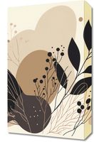 Obraz z serii minimalistyczne zatytułowany Harmonijka Przyrody. Ta grafika to estetyczna kompozycja abstrakcyjnych, organicznych kształtów i delikatnych motywów florystycznych w tonacji ziemi. Wykorzystanie różnych odcieni brązu, beżu oraz głębokiej czerni tworzy spokojną, ale i wyrafinowaną paletę barw. Kontrastowe, ciemne elementy florystyczne są pięknie zrównoważone przez jasne tło, nadając całości uczucie lekkości i elegancji.Jest to idealny wybór dla osób, które szukają subtelnego, ale wyrazistego elementu dekoracyjnego do swojego domu lub biura.