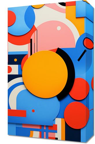 Obraz z serii geometria zatytułowany Kalejdoskop Emocji. Dynamiczna kompozycja pełna kolorowych kształtów i form przyciąga wzrok i prowokuje do refleksji. Wielowymiarowe okręgi, prostokąty i linie tworzą wizualny balet, w którym każdy element tańczy z innym w harmonii. Intensywne odcienie niebieskiego, czerwonego i żółtego kontrastują z subtelniejszymi pastelami, dodając obrazowi energii i głębi. Doskonale komponuje się w nowoczesnych biurach, kreatywnych przestrzeniach pracy oraz galeriach sztuki współczesnej.