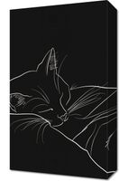 Obraz z serii minimalistyczne zatytułowany Nocny Spokój przedstawia subtelnie zarysowanego kota głęboko pogrążonego we śnie, umieszczonego na tle czarnej, nieskończonej przestrzeni. Białe linie delikatnie kreślą kształt zwierzęcia, uwypuklając jego spokojną postawę i łagodne rysy twarzy. To proste, lecz wyraziste dzieło sztuki przepełnione jest spokojem i elegancją, a kontrastowy czarno-biały motyw przyciąga wzrok i wprowadza do wnętrza atmosferę tajemniczości i wyciszenia. Idealny dla przestrzeni, które są azylem relaksu i odpoczynku, jak sypialnie czy zakątki do medytacji.