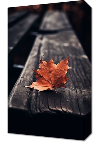 Obraz z serii natura zatytułowany Pojedynczy Liść. Ten obraz przedstawia pojedynczy, jasnobrązowy liść klonu, spoczywający na ciemnym, drewnianym tle ławki parkowej. Głębokie, nasycone kolory i wyraźny kontrast między liściem a ciemnym tłem, wywołują uczucie intymności i refleksji. Idealny dla przestrzeni, które chcą oddać hołd zmienności sezonów i subtelnemu pięknu natury, ten plakat wprowadza ciepło i spokój do każdego domu, biura, czy miejsca publicznego, zachęcając do chwili zadumy i spokoju.