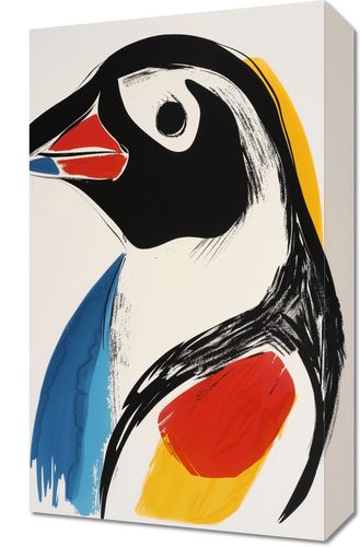 Obraz z serii abstrakcja zatytułowany Portret Ptaka. Prezentuje on stylizowany obraz ptaka, być może maskonura, z charakterystycznym dużym okiem i kolorowym dziobem. Artysta użył odważnych, geometrycznych kształtów i intensywnych barw, aby uchwycić esencję ptaka w prosty, ale wpadający w oko sposób. Duże bloki czerni, błękitu, czerwieni i żółci są zastosowane z lekkością pociągnięć pędzla, co nadaje dziełu lekkości i dynamiki. Ten obraz jest świadectwem tego, jak minimalizm może w pełni wyrazić piękno natury, będąc jednocześnie współczesnym i śmiałym elementem w każdym wnętrzu, od domowych przestrzeni po nowoczesne biura.
