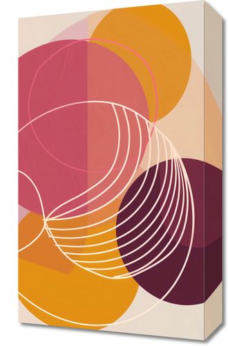 Obraz z serii minimalistyczne zatytułowany Przenikanie Ciepła. Grafika ta eksploruje delikatne gradacje kolorów i złożoność form poprzez nakładanie się i przenikanie okręgów. Subtelne linie tworzą głębię, a paleta ciepłych czerwieni, różu i złota przypomina o zmianach światła o zachodzie słońca. Obraz ten idealnie pasuje do nowoczesnych wnętrz, które cenią sobie ciepło i delikatność w designie, takich jak salon spa, joga studio lub medytacyjna przestrzeń domowa. Jego spokojna aura może także wzbogacić eleganckie biuro lub poczekalnię, tworząc atmosferę spokoju i ciepła.
