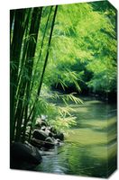 Obraz z serii natura zatytułowany Spokój Bambusów. Ukazuje on idylliczny zakątek przyrody, gdzie zielone pędy bambusa delikatnie zginają się nad błogim, spokojnie płynącym strumieniem. Gra światła i cienia na liściach bambusa tworzy wrażenie głębi i spokoju, zaś szemrząca woda dodaje uczucie świeżości i czystości. Ten obraz oddaje piękno i spokój odosobnionego zakątka natury, jest więc idealny dla przestrzeni relaksacyjnych takich jak spa, pokoje do medytacji lub jako ukojenie w zgiełku codzienności w domowych wnętrzach. To doskonała dekoracja dla tych, którzy pragną wprowadzić element natury i harmonii do swojego otoczenia.