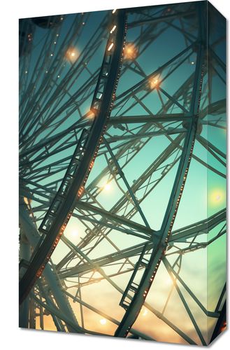 Obraz z serii wnętrza zatytułowany Światła Molocha. Na tym zachwycającym zdjęciu wielka konstrukcja diabelskiego młyna jest uchwycona z nietypowej perspektywy, ukazując skomplikowaną sieć metalowych prętów oświetlonych setkami migoczących światełek. Złoty zachód słońca w tle nadaje scenie ciepły, oniryczny nastrój. Ten obraz to pochwała inżynierskiego geniuszu i miejskiego życia, idealnie komponujący się w nowoczesnych przestrzeniach, takich jak biura, lofty, a także w przestrzeniach publicznych czy domowych salonach. Jest to również doskonała inspiracja dla tych, którzy cenią sobie miejską estetykę i nowoczesny design.