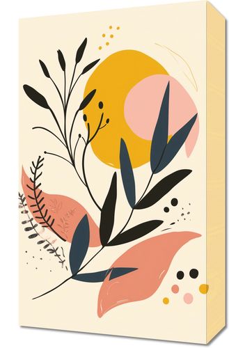 Plakat z serii minimalistyczne zatytułowany Szept Przyrody. Prezentuje on subtelny urok naturalnych elementów, które zostały zredukowane do esencji form i kolorów. Delikatna paleta beżu, różu, złota i głębokiej czerni tworzy miękkie tło dla dynamicznych kształtów roślinnych, które wydają się swobodnie tańczyć w ciepłym świetle. Abstrakcyjne kompozycje liści i pędów są połączeniem spontaniczności i kontrolowanej elegancji, wprowadzając wyciszającą atmosferę do każdej przestrzeni. Ten obraz to doskonały wybór dla tych, którzy pragną wprowadzić do swojego otoczenia odrobinę natury w formie nowoczesnej i stonowanej sztuki. Idealnie nadaje się do salonu, sypialni czy biura, gdzie może stanowić spokojny punkt centralny lub dyskretny akcent dekoracyjny.