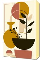 Obraz z serii minimalistyczne zatytułowany Wielkość Natury. Zaprezentowana jest tutaj elegancka kompozycja roślin w prostym naczyniu, zestawiona z geometrycznymi blokami kolorów w ciepłej, naturalnej palecie. Przywodzi ona na myśl harmonię i zorganizowaną prostotę, które można znaleźć w naturze, jak również w ludzkich tworach. Elementy w kształcie koła i półkola nadają kompozycji spokoju i równowagi, a linie i bloki kolorów tworzą poczucie głębi i struktury. Ten obraz będzie idealny do wnętrz, gdzie ceni się porządek i minimalistyczne podejście do dekoracji, wnosząc jednocześnie elementy natury i spokoju. Idealny do umieszczenia w przestrzeniach takich jak nowoczesne salony, eleganckie gabinety, lub jako spokojne tło w przestrzeniach biurowych.