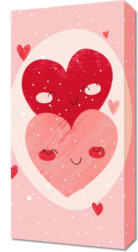 Obraz z serii abstrakcja zatytułowany ''Ciepło Serca''. Przedstawia on dwie zakochane postacie w kształcie serc, które przytulają na tle pastelowego różu. Większe serce z zamkniętymi oczami delikatnie otacza mniejsze, tworząc wrażenie bezpieczeństwa i miłości. Otoczenie jest pełne małych serduszek i kropek, przypominających lekko opadający śnieg lub konfetti, dodając magii i radości. Całość sprawia wrażenie bajkowej i kojącej, idealnej do wyrażenia uczuć i roztaczania atmosfery miłości.Ten obraz będzie pięknym akcentem w każdym pomieszczeniu, gdzie chcemy dodać odrobiny ciepła i uczuciowej bliskości, jak dziecięcy pokój, sypialnia czy nawet przestrzeń rodzinna. Jego słodki design i pozytywne przesłanie mogą także świetnie sprawdzić się jako prezent dla bliskiej osoby.