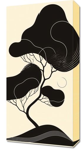 Obraz z serii minimalistyczne zatytułowany Echo Wiatru. Przedstawia abstrakcyjne drzewo z masywnymi, dynamicznymi kształtami przypominającymi chmury lub potoki wiatru, które opływają jego smukły pień i gałęzie. Całość utrzymana jest w monochromatycznej palecie barw, co wzmacnia siluetę i nadaje dramatycznego charakteru. Obraz ten może być interpretacją siły natury i jej nieustającej interakcji z żywymi organizmami. Idealny do nowoczesnych przestrzeni, które doceniają sztukę inspirowaną naturą, będąc zarówno odważnym oświadczeniem, jak i subtelnym nawiązaniem do sił przyrody działających wokół nas.