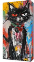 Obraz z serii abstrakcja zatytułowany Gburowaty Kiciak to odważne, street artowe przedstawienie czarnego kota z intensywnymi, czerwonymi oczami. Postać kota, zarysowana grubymi, dynamicznymi liniami, wyróżnia się na tle żywego, kolorowego graffiti. Dzieło łączy w sobie surowość miejskiego stylu z komicznym przedstawieniem zwierzęcia, co nadaje mu niepowtarzalny charakter. Drobne białe akcenty na sierści kota oraz wyraziste spojrzenie tworzą efekt, który przyciąga i utrzymuje wzrok obserwatora. Ten obraz, pełen energii i miejskiego ducha, doskonale odzwierciedla współczesną kulturową estetykę i będzie stanowił wyrazisty element dekoracyjny w nowoczesnych przestrzeniach takich jak loftowe apartamenty, kawiarnie i przestrzenie kreatywne.