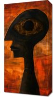 Obraz z serii abstrakcja zatytułowany Głęboki Wgląd przedstawia enigmatyczną sylwetkę o ludzkiej formie z dominującym, przeskalowanym okiem w miejscu głowy, wpatrującym się w widza z niezwykłą intensywnością. Tło obrazu jest abstrakcyjne, z bogatymi pociągnięciami pędzla w ciepłych odcieniach czerwieni i pomarańczy, sugerujące płomienne otoczenie lub burzliwe emocje. Sylwetka postaci jest zarysowana w głębokim czernią, co kontrastuje z jaskrawym tłem, a tekstura przypominająca sieć w obrębie oka może symbolizować skomplikowaną sieć ludzkich doświadczeń i percepcji. Dzieło to może wywoływać rozważania na temat ludzkiej świadomości i głębszego znaczenia bycia obserwatorem. Ten obraz będzie pasował do przestrzeni, które cenią głęboką myśl i filozoficzne dyskusje, takich jak biblioteki, studia artystyczne lub prywatne gabinety.