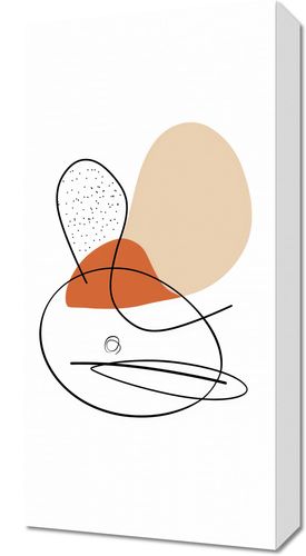 Obraz z serii minimalistyczne zatytułowany Impresja Chwili. Grafika jest kwintesencją współczesnego minimalizmu. Przedstawia abstrakcyjną kompozycję, gdzie organiczne linie łączą się z geometrycznymi kształtami, tworząc dynamiczną ale zarazem subtelną scenę. Delikatna paleta barw, która łączy w sobie pastelowy beż, głęboki koral oraz akcenty czerni i białej kropki, przemawia do miłośników nowoczesnego designu z nutą lekkości. Harmonijna gra kształtów i linii może być interpretowana na wiele sposobów, dając przestrzeń odbiorcy do własnych refleksji. Ten wyrafinowany obraz z pewnością doda charakteru nowoczesnym, minimalistycznym wnętrzom, będąc zarówno dyskretnym akcentem, jak i wyrazistym punktem skupienia w przestrzeni domowej, biurowej, lub galerii.