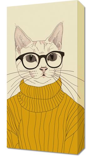 Obraz z serii abstrakcja zatytułowany Intelektualista to urocze przedstawienie kota ubranego w stylowy, żółty golf, dopełnionego okularami w intelektualnym stylu. Ilustracja charakteryzuje się subtelną linią i pastelową kolorystyką, co nadaje jej delikatny i stylowy wygląd. Okulary z grubymi oprawkami nadają kotu wyraz powagi i inteligencji, podczas gdy żółty sweter wskazuje na wyrafinowany gust. Całość kompozycji jest zabawna, ale jednocześnie elegancka, sprawiając, że obraz ten jest idealny dla tych, którzy cenią sobie humor połączony z klasą. Doskonale nadaje się do nowoczesnych przestrzeni mieszkalnych, pokoi młodzieżowych, biur lub jako dekoracja w księgarniach i kawiarniach.