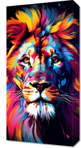 Obraz z serii abstrakcja zatytułowany Kolory Królestwa. Ten odważny i dynamiczny obraz przedstawia króla zwierząt - lwa, którego grzywa została zinterpretowana w eksplozji żywych, abstrakcyjnych barw. Wzór i intensywność kolorów podkreślają majestat i siłę lwa, dodając mu nowoczesnego i artystycznego charakteru. To dzieło sztuki przemawia mocą i wolnością, będąc idealnym wyborem dla przestrzeni kreatywnych, odważnych i pełnych energii, takich jak nowoczesne salony, pracownie artystyczne, czy przestrzenie młodzieżowe.