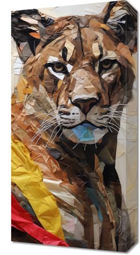 Obraz z serii wnętrza zatytułowany Papierowy Tygrys. Ta oryginalna i kreatywna ilustracja przedstawia portret tygrysa wykonany techniką kolażu z kolorowych kawałków papieru. Wykorzystanie różnych odcieni i tekstur papieru nadaje dziełu głębi i dynamiki, a jednocześnie zachowuje realistyczny obraz dzikiego zwierzęcia. Obraz ten jest wyjątkowym dziełem sztuki, które przyciąga wzrok i inspiruje, idealny dla miłośników natury i oryginalnego designu, świetnie sprawdzi się w nowoczesnych salonach, gabinetach lub jako wyrazisty akcent w przestrzeniach publicznych takich jak galerie sztuki czy kawiarnie.