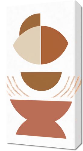 Obraz z serii boho zatytułowany Pastelowa Hipnoza. Łączy prostotę kształtów geometrycznych z subtelnością pastelowych barw, tworząc obraz o niemal hipnotycznym uporządkowaniu. W centrum kompozycji znajduje się dualistyczny kształt, który balansuje między symetrią a asymetrią, otoczony przez półkola i linie, przywołujące na myśl delikatne promienie słońca. Paleta kolorystyczna ogranicza się do ciepłych odcieni beżu, brązu i rdzawego różu, co dodaje dziełu wyrafinowanej subtelności. Doskonale odnajdzie się jako centralny punkt w jasnych, przestronnych wnętrzach, gdzie może stać się tłem dla głębokich refleksji, lub jako element dekoracyjny w minimalistycznie urządzonych pomieszczeniach, dodając im ciepła i elegancji.