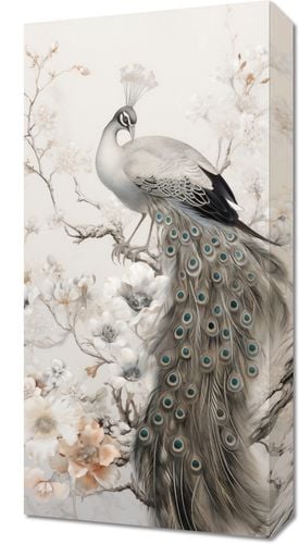Obraz z serii wnętrza zatytułowany Pawia Gracja. Ta grafika przedstawia majestatycznego pawia spoczywającego na gałęzi, otoczonego przez delikatne kwiaty magnolii. Kunsztownie oddane detale piór i kwiatów w pastelowej palecie barw tworzą uczucie spokoju i harmonii. Obraz ten jest idealny dla miłośników piękna natury i sztuki, doskonale nadaje się do wnętrz o klasycznej i eleganckiej estetyce, takich jak salon, sypialnia, a także jako wyjątkowy element dekoracyjny w spa lub miejscach relaksacji.