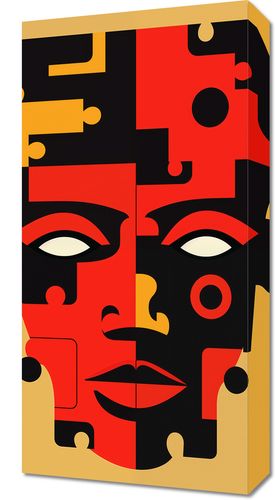 Obraz z serii abstrakcja zatytułowany Puzzle Tożsamości. Ten intrygujący obraz to gra abstrakcyjnych kształtów i intensywnych kolorów, które łączą się, tworząc stylizowany portret. Elementy przypominające puzzle symbolizują złożoność ludzkiej tożsamości i różnorodność osobowości. Dominująca czerwień i czernie kontrastują z jasnymi żółciami i bielami, przyciągając wzrok i prowokując do przemyśleń. Ten obraz to idealny wybór dla przestrzeni współczesnych, które cenią sobie oryginalność i głębokie przesłanie sztuki, jak również może być znakomitym akcentem w nowoczesnych biurach, salonach czy galeriach sztuki.