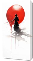 Obraz z serii motywy wschodnie zatytułowany Samotny Samuraj przedstawia postać w tradycyjnym japońskim stroju, samuraja, w dynamicznej pozie z mieczem, z potężnym, czerwonym słońcem w tle. Design wykorzystuje silne kontrasty kolorystyczne - biel i czerń z akcentami czerwieni, aby stworzyć dramatyczną i potężną wizualizację. Przedstawienie samuraja w akcji z rozpryskami tuszu naokoło podkreśla ruch i energię, a jednocześnie oddaje hołd tradycyjnym technikom japońskiego malarstwa atramentem. Ten obraz to doskonały wybór dla miłośników japońskiej kultury i sztuk walki, idealny do wnętrz nowoczesnych jak i tych o bardziej klasycznym charakterze.