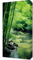 Obraz z serii natura zatytułowany Spokój Bambusów. Ukazuje on idylliczny zakątek przyrody, gdzie zielone pędy bambusa delikatnie zginają się nad błogim, spokojnie płynącym strumieniem. Gra światła i cienia na liściach bambusa tworzy wrażenie głębi i spokoju, zaś szemrząca woda dodaje uczucie świeżości i czystości. Ten obraz oddaje piękno i spokój odosobnionego zakątka natury, jest więc idealny dla przestrzeni relaksacyjnych takich jak spa, pokoje do medytacji lub jako ukojenie w zgiełku codzienności w domowych wnętrzach. To doskonała dekoracja dla tych, którzy pragną wprowadzić element natury i harmonii do swojego otoczenia.
