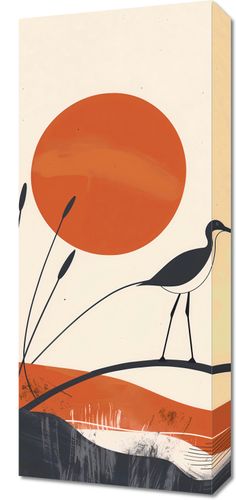 Obraz z serii minimalistyczne zatytułowany Ciepło Zachodów. Grafika urzeka swoją prostotą i elegancką paletą barw. Przedstawia on idylliczny pejzaż, gdzie ciepła, zachodzące słońce symbolizowane jest przez soczysty, pomarańczowy krąg, dominujący nad spokojnymi konturami krajobrazu. Sylwetka ptaka, zapewne czapli, stoi uważnie na delikatnie zakrzywionej linii, która może przedstawiać brzeg wody, dodając dynamizmu i życia do tej niemal statycznej sceny. Smukłe trzciny rzucają cienie, które subtelnie nawiązują do naturalnych form, a stonowane kolory ziemi tworzą poczucie ciepła i spokoju. Idealny do zawieszenia w przestrzeniach, gdzie chcemy wprowadzić odrobinę natury i spokojnej, relaksującej atmosfery, takich jak salony, poczekalnie, czy nawet prywatne gabinety. To dzieło wprowadzi delikatny, naturalny element do każdego wnętrza, sugerując refleksję i kontemplację piękna otaczającego świata.