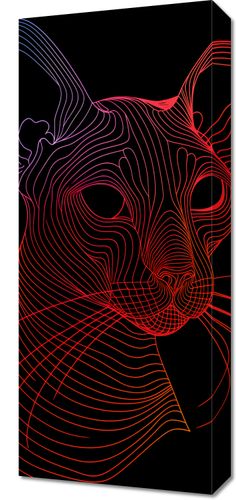Obraz z serii pop art zatytułowany Cyfrowa Kocica przedstawia futurystyczny wizerunek kota sfinksa, wykonany za pomocą płynnych, abstrakcyjnych linii w odcieniach czerwieni i pomarańczu na głębokim, czarnym tle. Wzór linii tworzy iluzję trójwymiarowości i ruchu, podkreślając wyraziste cechy kociego profilu, takie jak duże uszy, wyłaniające się oczy i charakterystyczne rysy twarzy. Minimalistyczne użycie koloru i linii w kontraście z ciemnym tłem nadaje dziełu nowoczesny wygląd, który przyciąga wzrok i pobudza wyobraźnię. Ten artystyczny obraz świetnie wpisze się w wnętrza o nowoczesnym designie, szczególnie wśród miłośników zwierząt i miłośników sztuki cyfrowej, nadając przestrzeni odrobinę współczesnego stylu i kociego wdzięku.