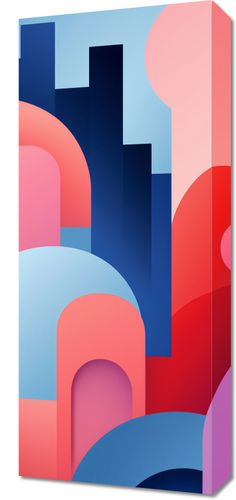 Obraz z serii geometria zatytułowany Miasto Kolorów. Złożone z różnorodnych kształtów i tonacji, przedstawiające wyimaginowane miasto pełne zakamarków i mostów. Błękitne wieżowce kontrastują z ciepłymi różami i czerwieniami, tworząc uczucie ruchu i dynamiki. Gładkie linie i łuki wprowadzają uczucie spokoju w środku urbanistycznego zgiełku. Doskonale odnajdzie się w nowoczesnych biurach oraz w przestrzeniach artystycznych galerii.