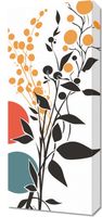 Obraz z serii minimalistyczne zatytułowany Rozkwitające Życie. Obraz przedstawia odświeżającą i ożywioną kompozycję, w której czarne sylwetki roślin wzbijają się ku bogato kolorowym okręgom, tworząc wizję rozkwitającego ogrodu. Kolorystyka plakatu, pełna złotych, pomarańczowych i akwamarynowych akcentów na białym tle, oddaje radość i obfitość natury.Ten obraz będzie pięknym dodatkiem do każdej przestrzeni, która chce oddać hołd naturze i jej niezwykłemu pięknu. Świetnie pasuje do jasnych, przestronnych wnętrz, takich jak salony, gabinety czy jadalnie. Z pewnością wprowadzi do pomieszczenia atmosferę witalności i naturalnego piękna.