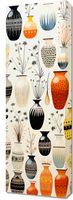 Obraz z serii wnętrza zatytułowany Symfonia Wazonów. Wspaniałe wazony w bogatej palecie kolorów, od głębokiej czerni do ciepłych odcieni pomarańczu, tworzą intrygującą mozaikę wzorów i kształtów. Delikatne motywy roślinne, które zdobią niektóre wazony, dodają uroku i lekkości, a różnorodność wzorów i faktur przyciąga wzrok i zaprasza do głębszej refleksji. Kontrast między jasnymi i ciemnymi barwami, a także subtelne niuanse w każdym wazonie, dodają tej kompozycji głębi i dramatu. Ten artystyczny plakat doskonale wpisuje się w klimat wyrafinowanych galerii sztuki, eleganckich kawiarni oraz nowoczesnych przestrzeni mieszkalnych, które stawiają na unikatowy design.
