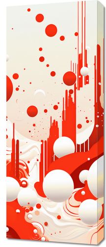 Obraz z serii abstrakcja zatytułowany Krwiście Czerwone Wibracje. Energetyczne kule i linie w tonacjach czerwieni i bieli tworzą wizualną symfonię, która pobudza zmysły. Gładkie fale łączą się z ostrymi, pionowymi liniami, tworząc uczucie ruchu i pulsacji. Czerwone krople unoszą się jak planety w kosmicznej przestrzeni, dodając obrazowi głębi i dynamiki. Jego odważny i nowoczesny design dodaje nuty świeżości i innowacyjności. Doskonale pasuje do nowoczesnych biur, studiów projektowych oraz przestrzeni artystycznych, gdzie kreatywność spotyka się z technologią.