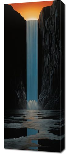 Obraz z serii abstrakcja zatytułowany Wodospad Światła. Grafika ta przenosi nas w serce majestatycznego kanionu, gdzie potężny wodospad wylewa się z otchłani, tworząc mistyczne i uspokajające widmo. Wodospad, oświetlony przez promienie wschodzącego słońca, rysuje się na tle ciemnych ścian kanionu, tworząc silny kontrast między światłem a cieniem. Gra światła na wodzie i skalistym podłożu dodaje kompozycji głębi i tekstury. Ten obraz jest idealnym dodatkiem do każdego wnętrza, w którym chce się stworzyć atmosferę spokoju i refleksji, świetnie sprawdzając się w salonach, pokojach medytacyjnych czy przestrzeniach wellness.