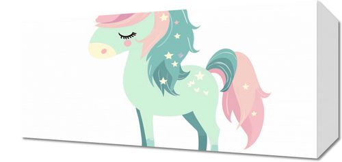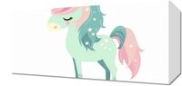 Obraz z serii wnętrza zatytułowany Jednorożec Marzeń. Na tej zachwycającej ilustracji przedstawiono pastelowego jednorożca, którego turkusowe ciało pokryte jest subtelnymi gwiazdkami, a jego miękka, różowa grzywa delikatnie opada. Zamknięte oczy i łagodny uśmiech dodają uroku tej mitycznej istocie, wprowadzając element spokoju i radości. Obraz idealnie nadaje się do pokoju dziecięcego lub innej przestrzeni przeznaczonej dla dzieci, tworząc atmosferę bajkowej krainy pełnej czarów i cudów. Delikatne kolory i uroczy wzór są doskonałe, aby rozbudzić wyobraźnię i dodać uroku każdemu wnętrzu, zachęcając do marzeń i optymizmu.