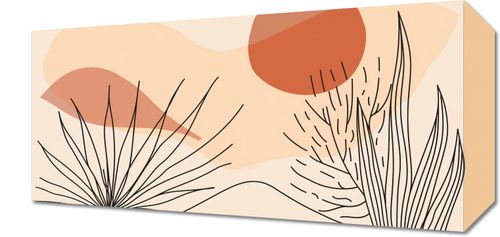 Obraz z serii boho zatytułowany Miękka Roślinność. Obraz przedstawia proste, lecz eleganckie rośliny pustynne na tle abstrakcyjnych, miękkich form i kolorów. Całość kompozycji opiera się na spokojnych odcieniach beżu, brązu oraz głębokiego terrakoty, co przywodzi na myśl ciepło i suchość pustynnego krajobrazu. Ten obraz świetnie sprawdzi się w wnętrzach o neutralnej kolorystyce, dodając im charakteru i ciepła. Idealnie nadaje się do salonu, przestrzeni wypoczynkowych lub biura, gdzie wprowadzi elementy natury i harmonii.