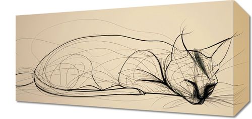 Obraz z serii wnętrza zatytułowany Odpoczynek. Prezentuje on minimalistyczne, lecz wyrafinowane przedstawienie kota odpoczywającego, wykonane za pomocą złożonych, płynnych linii. Kontury kształtujące zwierzęce ciało na złotawym tle emanują spokojem i harmonią, przyciągając wzrok swoją subtelną grą cieni i światła. Ta stylizowana ilustracja o prostocie z pogranicza abstrakcji i realizmu idealnie nadaje się do nowoczesnych przestrzeni życiowych, które cenią sobie elegancję i spokój, takich jak medytacyjne zakątki domu, ciche gabinety lub designerskie studio jogi. Obraz jest zaproszeniem do zwolnienia tempa i cieszenia się chwilą relaksu w naszym zagonionym świecie.