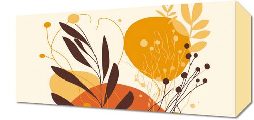 Obraz z serii minimalistyczne zatytułowany Szept Lasu. Spokojna i równoważąca kompozycja przedstawia zbiór roślin, wśród których przeważają delikatne i wydłużone liście. Kolorystyka grafiki oscyluje wokół ciepłych odcieni żółci, pomarańczy i brązu, co nadaje ilustracji przytulnego i spokojnego nastroju.Ta grafika będzie doskonale komponować się w przestrzeniach, gdzie chcemy stworzyć oazę spokoju, sprzyjającą relaksacji i odprężeniu. Może być wspaniałym dodatkiem do sypialni lub salonu, gdzie ciepłe barwy i natura mają pozytywny wpływ na samopoczucie.
