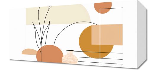 Obraz z serii boho zatytułowany Terrakotowy Krzyk.Obraz przedstawia misternie ułożoną kompozycję z geometrycznymi i organicznymi kształtami. Ujęte w stonowanej palecie barw terrakoty, beżu i czerni, delikatne linie roślin wynurzają się z minimalistycznego wazonu, a tło składa się z różnych form i kształtów, które tworzą poczucie głębi i równowagi.Ta grafika doskonale wpasuje się w nowoczesne, minimalistyczne wnętrza, które cenią sobie prostotę oraz wyrafinowanie. Może zdobić ściany w strefach wypoczynkowych, eleganckich salonach, a także stanowić punkt centralny w przestrzeniach takich jak jadalnie czy hol. Wyważony charakter plakatu sprzyja koncentracji i medytacji, co czyni go idealnym do pomieszczeń przeznaczonych do pracy kreatywnej lub odprężenia.