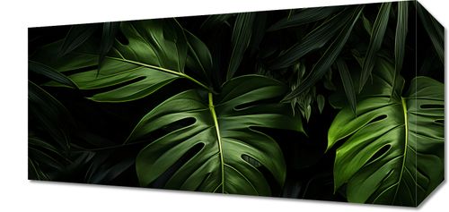 Obraz z serii natura zatytułowany Zielony Szept, przyciąga uwagę swoją głębią i bogactwem odcieni zieleni. Mieniące się liście monstery, połączone z subtelnymi, niemal abstrakcyjnymi formami innych roślin tropikalnych, tworzą kompozycję pełną życia i harmonii. Ta zieleń to synonim spokoju i regeneracji, a każdy detal podkreślony jest przez delikatne światło, które wydobywa tajemniczość i naturalne piękno roślin. Idealnie komponuje się w przestrzeniach współczesnych, które stawiają na ekologiczne i naturalne elementy dekoracyjne, jak również w miejscach publicznych, takich jak hotele, restauracje czy biura, gdzie może stanowić oazę relaksu i natury. Ta praca doskonale wpisuje się w potrzebę bliskości z przyrodą w zatłoczonych, miejskich wnętrzach.
