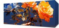 Obraz z serii abstrakcja zatytułowany Żywy Uścisk, dzieło przedstawia bukiet pełen życia i koloru. Widać na nim dłoń delikatnie trzymającą rozkwitające róże w odcieniach intensywnej pomarańczy i głębokiego błękitu, które kontrastują z tłem w odcieniu kojącej kobaltowej głębi. Dynamiczne linie i plamy koloru dodają kompozycji energii i nowoczesności. Ta praca w doskonały sposób oddaje siłę i piękno natury, przywodząc na myśl obrazy odwagi i pasji. Idealnie nada się do nowoczesnego salonu, biura kreatywnego lub każdego innego miejsca, gdzie chcemy dodać akcent śmiałości i inspiracji.