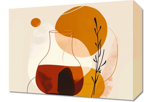 Obraz z serii minimalistyczne zatytułowany Esej o Barwach. To artystyczne dzieło przedstawia różnorodne, płynne formy i abstrakcyjne kształty w ziemistej palecie kolorów, takich jak głęboki pomarańcz, ciepły beż i elegancki brąz, dopełnione delikatnymi, czarnymi detalami roślin.Ten obraz świetnie odnajdzie się w nowoczesnym, minimalistycznym wnętrzu, które szuka ciepła i charakteru, dodając mu stylu i głębi. Będzie pasował do jasnych przestrzeni dziennych, gabinetów czy holów, wprowadzając element spokoju i skupienia.