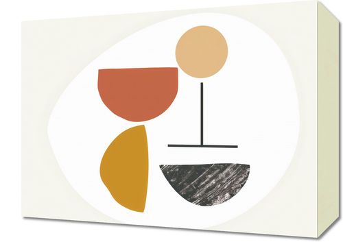 Obraz z serii boho zatytułowany Kompozycja Balans. Obraz oferuje spokojne połączenie abstrakcyjnych kształtów i delikatnych tekstur, które razem tworzą poczucie harmonii i równowagi. Stylizowane półkola i linie w odcieniach czerwieni, żółci i neutralnych barw mogą przywodzić na myśl elementy natury, takie jak kwiaty i słońce, zrównoważone przez surową teksturę przypominającą kamień lub ziemię. To dzieło doskonale nadaje się do przestrzeni, które cenią prostotę i wyciszenie, takie jak minimalistyczne salony, jasne gabinety, czy miejsca odpoczynku. Może wprowadzić element kontemplacyjny do przestrzeni, jednocześnie zachowując estetyczną klarowność i lekkość.