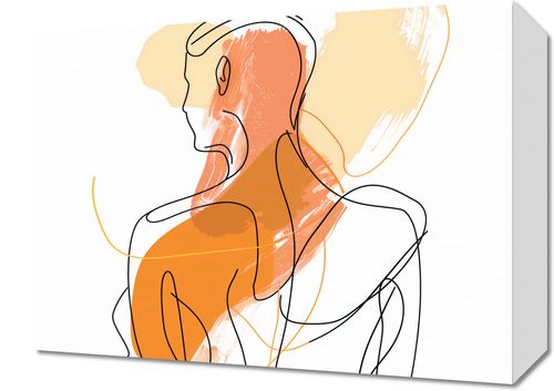 Obraz z serii minimalistyczne zatytułowany Kontur Własności. Grafika przedstawia stylizowaną, abstrakcyjną sylwetkę człowieka, zarysowaną grubymi, fluidalnymi liniami na tle o ciepłych, spokojnych kolorach. Harmonia pomiędzy beżem a pomarańczem tworzy wrażenie spokoju i ciepła, podczas gdy minimalistyczna forma sugeruje skupienie i kontemplację. Całość kompozycji jest zarazem dynamiczna dzięki śmiałym, zakreślonym liniami, jak i uspokajająca przez pastelowe plamy barw. Świetnie sprawdzi się w pomieszczeniach, które mają służyć relaksacji i odpoczynkowi, takich jak sypialnie czy pokoje medytacyjne. Będzie również cennym dodatkiem do przestrzeni wspólnych, takich jak salony lub poczekalnie, gdzie neutralne, ale ciepłe barwy wprowadzą atmosferę wyciszenia i elegancji.