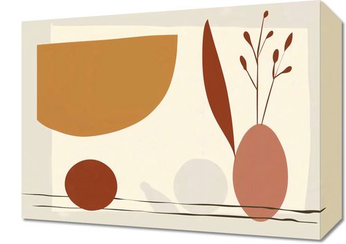 Obraz z serii boho Łodygi Wizji.Na grafice widzimy kompozycję geometryczną złożoną z delikatnych kształtów i linii. Ciepła paleta barw z przewagą odcieni pomarańczu, beżu i brązu tworzy przytulną atmosferę. Wyraźne, organiczne linie przypominają łodygi roślin i delikatne kwiatostany, które kontrastują z płaskimi, geometrycznymi formami w tle. Całość ma charakter relaksujący i minimalistyczny, sugerując spokój i harmonię. Obraz ten mógłby być świetnym dodatkiem do wnętrz w stylu skandynawskim lub nowoczesnym, gdzie kluczową rolę odgrywa prostota i naturalne piękno.