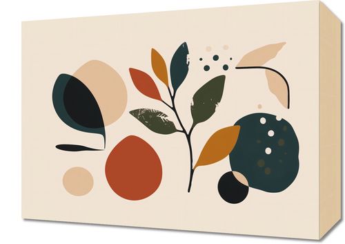 Obraz z serii minimalistyczne zatytułowany Ogród Melancholii. Grafika ta przedstawia kolekcję stylizowanych liści i kształtów, które tworzą spokojną i harmonijną kompozycję w ciepłej palecie barw - od głębokiego granatu po delikatne odcienie beżu i ochry, z akcentami w kolorze terrakoty. Każdy element graficzny, choć uproszczony, jest bogaty w detale, co nadaje plakatowi subtelną głębię i teksturę.Ten obraz będzie pięknie wyglądał w wnętrzach, gdzie naturalne materiały są na czele - takich jak drewno, kamień lub lniane tkaniny. Jego prosta, ale elegancka estetyka sprawia, że jest to idealny dodatek do salonu, jadalni, a nawet kuchni, wprowadzając do pomieszczenia spokój i równowagę.