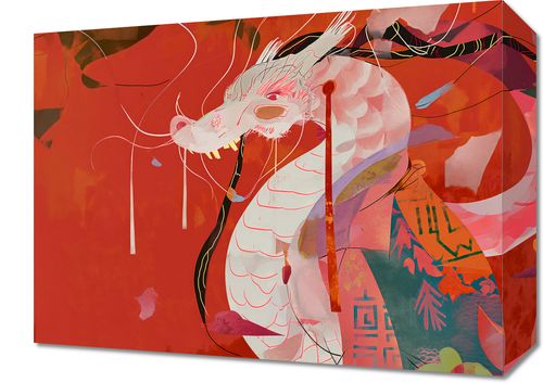 Obraz z serii motywy wschodnie zatytułowany Orientacyjny Smok, przedstawia kreatywną i nowoczesną interpretację tradycyjnego azjatyckiego smoka. Użyto bogatej palety czerwieni i pomarańczy, aby nadać energię i pasję scenie, a delikatne przerywane linie i formy abstrakcyjne dodają dziełu dynamiki i współczesnego charakteru. Smok, przedstawiony z otwartą paszczą i dzikim spojrzeniem, wydaje się ryczeć, a jego ciało płynnie przepływa przez kompozycję, tworząc wrażenie ruchu i siły. Tło, na którym pojawiają się subtelne nawiązania do wschodniej architektury i symboliki, wzmacnia kulturowe korzenie motywu. Ten obraz będzie idealnym uzupełnieniem współczesnych przestrzeni, które czerpią z tradycji i łączą je z nowoczesnym designem, takich jak salony w stylu fusion, przestrzenie kulturowe, a także restauracje i salony, gdzie chce się wprowadzić element orientalnego ducha.