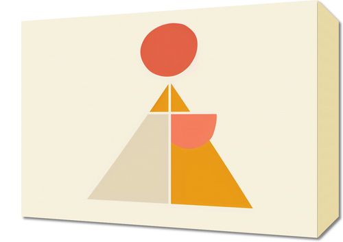 Obraz z serii boho zatytułowany Piramida Równowagi.Na obrazie widnieje uproszczona, ale wyrazista kompozycja geometryczna, składająca się z trójkąta podzielonego na mniejsze sekcje, półkola oraz kółka na szczycie. Kolorystyka utrzymana w pastelowych odcieniach beżu, pomarańczy i czerwieni, wprowadza poczucie ciepła i spokoju.Dzieło idealnie wpisuje się w minimalistyczne i nowoczesne przestrzenie, stanowiąc zarazem element medytacyjny jak i dekoracyjny. Dopełnieniem mogą być proste, drewniane ramy, które podkreślą naturalność prezentowanej formy. Jest to obraz, który może znaleźć swoje miejsce w domowym biurze, salonie, a nawet w przestrzeniach komercyjnych, takich jak kawiarnie lub poczekalnie.
