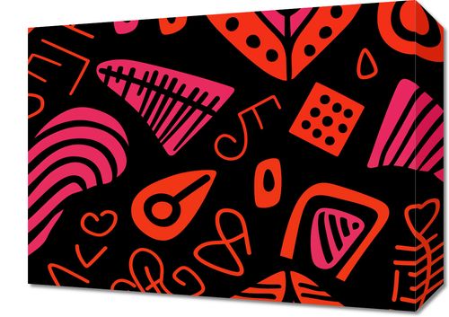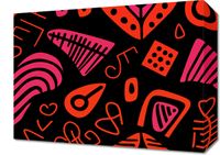 Obraz z serii abstrakcja zatytułowany Rytm Wzorów - pulsujące, energetyczne dzieło sztuki, które łączy w sobie abstrakcyjne kształty i wibrujące kolory na ciemnym tle. Wzory są zainspirowane żywiołowością muzyki i miejskiego życia, z nutami, sercami i innymi elementami graficznymi, które tworzą rytmiczny i wizualnie hałaśliwy krajobraz. Intensywne czerwienie i różowe akcenty kontrastują z głęboką czernią, nadając plakatowi wyrazistość i mocny charakter. To idealny wybór do nowoczesnych przestrzeni, które celebrują kreatywność i dynamiczność, takich jak studia projektowe, muzyczne bary czy urbanistyczne lofoty.