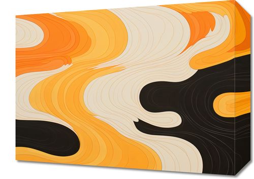 Obraz z serii abstrakcja zatytułowany Słońce i Cień. Falujące linie w odcieniach złota, białego i głębokiej czerni zataczają taniec, przypominający to ciepłe promienie słoneczne, to mroczne zakamarki nocy. Dynamiczne zakręty i zwroty tworzą rytm, który prowadzi oko przez całą kompozycję, wprowadzając uczucie ruchu i energii. Ciepłe odcienie pomarańczy kontrastują z chłodnymi, ciemnymi zakątkami, dodając obrazowi głębi i wielowymiarowości. Doskonale nadaje się do nowoczesnych biur, artystycznych galerii oraz salonów o minimalistycznym wnętrzu, pragnących dodać odrobinę koloru i życia do swojej przestrzeni.