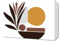 Plakat z serii minimalistyczne zatytułowany Stylizacja Roślin. Prezentuje on stylizowaną kompozycję roślinnych elementów i geometrycznych kształtów, wykorzystując ciepłą paletę brązów, beżów i głęboką ochrę. Proste formy tworzą spokojną, ale wyraźną grafikę, która wprowadza poczucie równowagi i spokoju. Ten obraz doskonale nada się do wnętrz w stylu mid-century modern, skandynawskich lub innych minimalistycznych przestrzeni, gdzie natura jest kluczowym elementem dekoracyjnym. Jego ziemiste barwy mogą dodać ciepła i naturalnego charakteru do każdego pomieszczenia, od salonu po spokojny kącik czytelniczy.