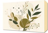 Obraz z serii minimalistyczne zatytułowany Szronowata Barwa. Przedstawia on delikatną kompozycję liści i gałązek w tonacjach zieleni i beżu, na łagodnym tle w pastelowych barwach, z dyskretnymi kropeczkami przypominającymi spokojny deszcz dodając elementu kontemplacji. Ten obraz wprowadzi harmonię i delikatność do każdego pomieszczenia. Jego stonowane kolory i prosta forma doskonale odnajdą się w przestronnych i jasnych wnętrzach, takich jak skandynawskie mieszkania, biura, czy salony spa.