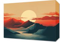 Obraz z serii pejzaże zatytułowany Zachód Słońca nad Górami. Ten graficzny obraz przedstawia stylizowany krajobraz górski o zachodzie słońca, z dominującymi ciepłymi odcieniami czerwieni i pomarańczy, które kontrastują z spokojnymi tonami ciemnego morza. Harmonia kolorów i płynne linie nadają kompozycji spokojny, ale zarazem wyrazisty charakter. Doskonale sprawdzi się jako centralny punkt w każdym pomieszczeniu, wprowadzając element ukojenia i inspirującej natury. Idealny dla tych, którzy pragną dodać do swojego wnętrza nutę artystycznego spokoju.