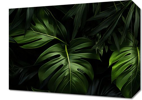 Obraz z serii natura zatytułowany Zielony Szept, przyciąga uwagę swoją głębią i bogactwem odcieni zieleni. Mieniące się liście monstery, połączone z subtelnymi, niemal abstrakcyjnymi formami innych roślin tropikalnych, tworzą kompozycję pełną życia i harmonii. Ta zieleń to synonim spokoju i regeneracji, a każdy detal podkreślony jest przez delikatne światło, które wydobywa tajemniczość i naturalne piękno roślin. Idealnie komponuje się w przestrzeniach współczesnych, które stawiają na ekologiczne i naturalne elementy dekoracyjne, jak również w miejscach publicznych, takich jak hotele, restauracje czy biura, gdzie może stanowić oazę relaksu i natury. Ta praca doskonale wpisuje się w potrzebę bliskości z przyrodą w zatłoczonych, miejskich wnętrzach.